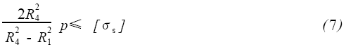 根據過盈配合界面的摩擦阻力矩大于密封面的摩擦力矩, 由過盈產生的結合壓強p有下列關系