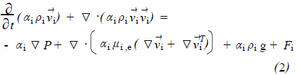 氣、液兩相存在速度梯度,考慮相間相互作用力,兩相流動的動量方程為:
