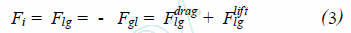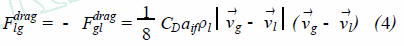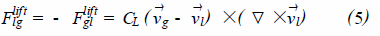 其中, CD 為牽引系數, aif 為相間表面積濃度(單位體積中的相間面積,與氣泡表面幾何結構相關) 。上升力與氣液兩相的相對速度以及流體速度相關,為 :