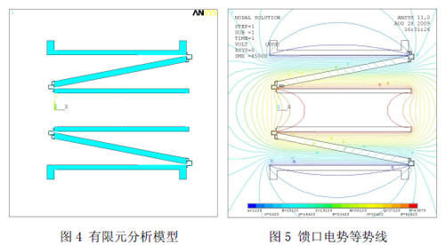 因此考慮到實(shí)際工況,為了提高安全系數(shù),將許用電壓設(shè)為45KV。將此電壓值視為ICRF 運(yùn)行時(shí)的工作電壓,對(duì)于饋口結(jié)構(gòu)進(jìn)行分析計(jì)算。有限元計(jì)算模型如圖4 所示。