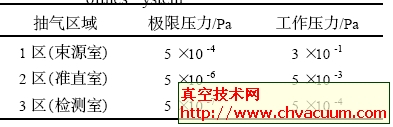 表1 分子束質譜三級差分抽氣系統的極限及工作真空設計指標