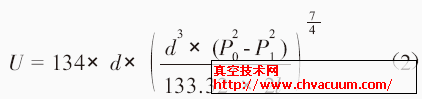 U 為長管粘滯流流導,d 為長管的內徑(cm),l 為管長(cm),P0 和P1 分別為大氣和一級真空的壓力。