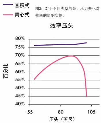 圖3.對于不同類型的泵,壓力變化對效率的影響實例。