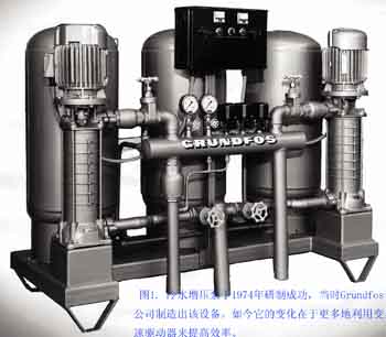 冷水增壓泵于1974年研制成功,當時Grundfos公司制造出該設備(圖1)。該設備的研制利用了變速驅動器(變頻器)來改變現今增壓泵的速度。使用變頻器的一些重要好處包括:
