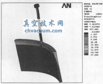 表1給出了兩種工況下的分析計算結果。圖2為升壓水頭工況下筒閥整體的應力分布,圖3為升壓水頭工況下筒閥整體的變形分布。