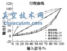 定位器靜態特性表現為定位器實測曲線與理想曲線之間的一致性。