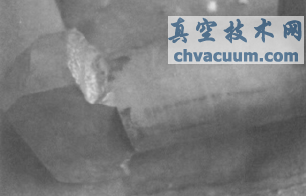 另一方面,從閥錐打開順序分析,南側(cè)的進(jìn)汽,任何時(shí)候都比北側(cè)大,故南側(cè)閥桿在汽流沖擊下容易發(fā)生松動(dòng)磨損(圖4),而北側(cè)閥桿每次都是疲勞折斷。由此可見,高壓調(diào)門結(jié)構(gòu)存在設(shè)計(jì)不合理因素,是造成閥桿折斷的根本原因。只要這一原因存在,總是表現(xiàn)為南側(cè)閥桿裝配面容易磨損、松動(dòng)或頭部脫落,而北側(cè)閥桿總是在填料函根部處疲勞折斷。2009年3月底,西門子北京總部派人員到現(xiàn)場(chǎng)了解情況,確認(rèn)了該機(jī)型調(diào)門設(shè)計(jì)存在先天不足。