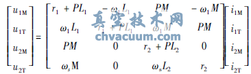 以上各式中,r1、r2為定轉(zhuǎn)子電阻;L1、L2為定轉(zhuǎn)子自感;M為定轉(zhuǎn)子互感;u1M、u1T、u2M、u2T為M、T軸定轉(zhuǎn)子電壓;ωs為轉(zhuǎn)差角頻率;ω1為同步旋轉(zhuǎn)角頻率;T為電磁轉(zhuǎn)矩;i1M、i1T、i2M、i2T為M、T軸定轉(zhuǎn)子電流;PN為電動機極對數(shù);Ψ1M、Ψ1T、Ψ2M、Ψ2T為M、T軸定轉(zhuǎn)子磁鏈;P為微分算子;Ψ2為轉(zhuǎn)子磁鏈。