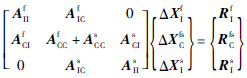式中:上標(biāo)f和s分別表示為流體域和結(jié)構(gòu)域;下標(biāo)C和I分別表示為耦合界面處和內(nèi)部節(jié)點(diǎn)上的變量;Af、As為耦合系統(tǒng)的等效質(zhì)量矩陣;ΔXfI、ΔXfsC、ΔXsI分別為流體域、耦合界面處和結(jié)構(gòu)域內(nèi)的節(jié)點(diǎn)未知數(shù)向量;RfI、RfsC、RsI分別為流體域、耦合界面處和結(jié)構(gòu)域內(nèi)的外力向量。