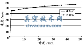 圖5 閥門開啟瞬時速度理論值與實驗值對比曲線