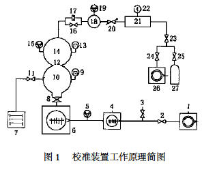 裝置工作原理簡圖如圖1。由供氣系統、進樣系統、校準室和抽氣系統等部分組成。