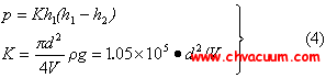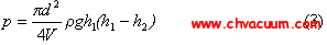 此式即為壓縮式真空計的基本方程式。式中d為測量毛細管的內(nèi)徑。V和d在吹制壓縮式真空計時可測得為已知數(shù)據(jù),則: