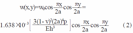 假設硼硅膜在Z軸方向上的變形量w>>h (硼硅膜的厚度), 采用大撓度理論對硼硅膜進行分析,誤差較小。分析可得到在硼硅膜上任意一點(x, y)處的撓度, 則