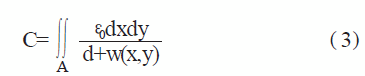 式中: E是硼硅膜的楊氏模量; ν是泊松比; a是方形電極邊長的一半。此時, 電容值