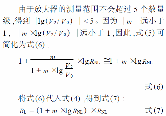 放大器系統非線性是一種在分析儀器放大器電子線路中廣泛存在的現象,它表現為系統對小信號的響應畸變。假設放大器的滿量程信號強度為V0 ,嚴格來講,小于V0 的信號都會產生非線性效應。電子線路的非線性理論和實驗研究結果表明,非線性效應服從對數規律。因此,對信號強度的非線性修正模型可以用式(1)表示: