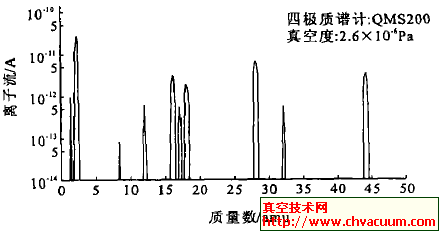 圖1 真空容器有漏氣的殘余氣體譜圖