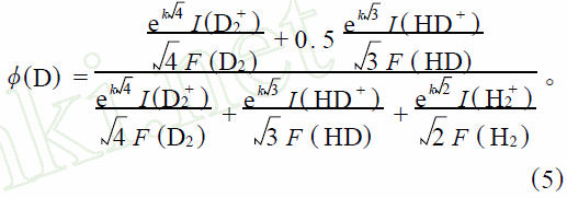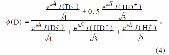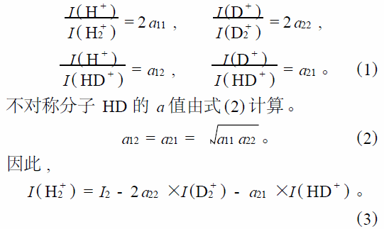 其中, I ( H+ ) , I (D+ ) , I ( H2+ ) , I ( HD+ ) ,I (D2+ ) 分別為H , D , H2 , HD , D2 的離子流強度; I2為質量數為2的離子流強度。