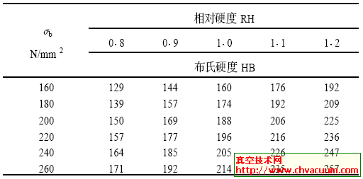 根據(jù)GB/T9439-1988及ISO185-1988-12-15《灰鑄鐵分級》附錄B 的規(guī)定,硬度和抗拉強(qiáng)度之間的關(guān)系參考值見表2 。