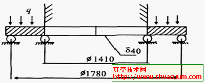 已知新型試壓裝置的最大受力直徑D1 =1 709mm , 最小受力直徑D2 = 1 410mm , P =215MPa , 則端面受力F′為
