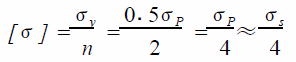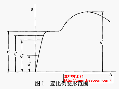閥門在工作中受到介質壓力作用同時還受到密封副之間擠壓力的作用,在這些作用力作用下,閥門閥座和閥瓣等承壓件因受力而變形,當其變形量超出亞比例變形范圍時閥門密封副因過大變形而產生泄漏,于是閥門失效。此時,亞比例極限是當試棒受拉產生最大比例變形的一半變形量時的抗拉強度,即σy = 0.5σP (圖1) 。材料比例極限、彈性極限和屈服極限相差不大, 可近似地取σP≈σe≈σs , 安全系數n取2, 于是閥門承壓件不能發生失效的許用應力[σ]為