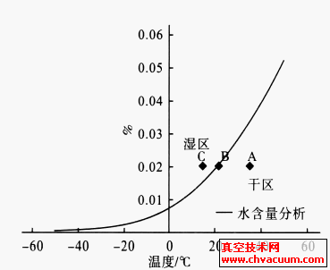 A工況,溫度40℃: 100%的水溶解在液氯中,認(rèn)定為干的。B工況,溫度20℃: 100%的水溶解在液氯中,認(rèn)定為干的。C工況,溫度- 10℃:存在多余的水未溶解在液氯中,認(rèn)定為濕的。