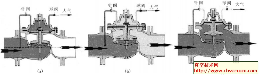 ( c)當球閥全開,上腔的壓力釋放到大氣中,主閥處于全開位置