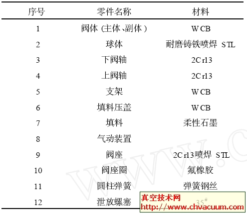 耐磨卸灰球閥(圖1)主要由閥體、球體、閥桿、支架、閥座、氣動裝置和泄放螺塞等組成(表1) 。該閥公稱壓力PN016MPa,強度試驗壓力019MPa,密封試驗壓力0166MPa,適用溫度≤250℃,適用于輸送灰、漿渣類等流體介質。
