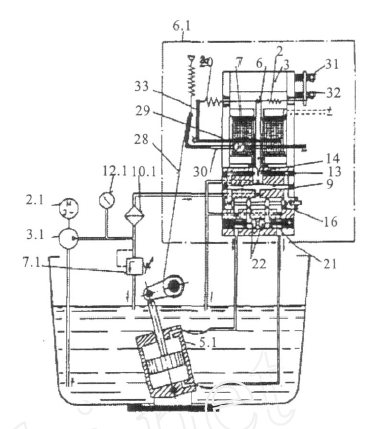 標準型液壓伺服執行器的工作原理。由電機驅動雙泵經過過濾器和伺服閥把液壓油送入油缸中, 實現活塞桿的伸出或收回動作。
