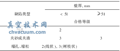從閥門供應商提供的射線檢測報告分析,閥門部件是按ASME B16.34(參考ASTM E-446)進行評定的,該批閥門的鑄件(閥體、閥蓋)質量合格。在排除因焊接產生缺陷的原因后,對閥門鑄鋼件所采用的無損檢驗標準進行了分析。