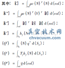 其中:{N}T:單元形函數(shù);{Te}:單元節(jié)點(diǎn)溫度矢量。