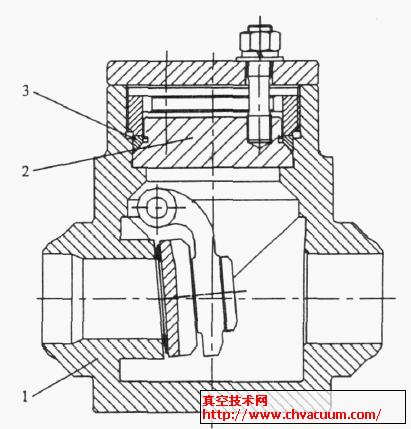 兩臺旋啟式止回閥(圖1)出廠前曾進行了P =42.0MPa的整機閥門強度及中法蘭密封副密封試驗,無泄漏。