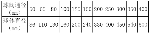 1.1、閥門球體技術參數(見表一)