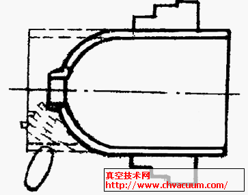 此方案分為三步:第一步是將鋼管根據尺寸切斷后,夾在旋壓機床主軸夾盤中隨主軸一起旋轉,旋輪借助于液壓仿形裝置對管坯進行若干次旋壓,使其逐漸縮徑收口(見圖2),形成半圓球體;第二步將已形成的球體部份切下,并加工焊接坡口;第三步將二個半球體用氬孤焊對焊成所需的空心球體毛坯。