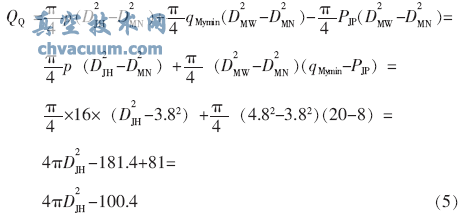 當(dāng)DJH=7cm,密封圈對(duì)球體的壓力QQ=4πDJH-100.4=515.04kgf,閥座密封面上的實(shí)際工作比壓q=1.86D2JH-14.86=76.28(kgf/cm2),滿足