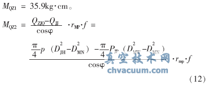 rMp——球體摩擦半徑的平均值,rMp=R/2(1+cosφ),R為球體半徑,即R=3.2cm。根據(jù)實(shí)物中密封圈與球體間密封面上的法向壓力角度約為48°30',即rMp=2.66。f——摩擦系數(shù),對(duì)聚四氟乙烯的密封圈f=0.05。