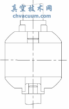 為了減少球閥的操作扭矩和增強(qiáng)密封的可靠程度,避免球體受壓后產(chǎn)生位移,并先磨損出口端的密封面,所以本球閥采用固定球的結(jié)構(gòu)形式,其結(jié)構(gòu)形式如圖4所示,即用球體下軸把球體固定(閥桿、球體及下軸的中心線必須在同一軸線上)。固定球結(jié)構(gòu)形式的球閥都帶有浮動(dòng)閥座,在球體轉(zhuǎn)動(dòng)時(shí)或受壓后,閥座產(chǎn)生移動(dòng),密封圈都緊壓在球體上,以保證密封。通常在與球體的上、下軸上裝有自潤(rùn)滑軸承或銅套軸承,減小操作扭矩。