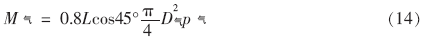 L——曲柄力臂長(zhǎng)度,為考慮氣缸行程、直徑及成本的合理,故初選用球閥DN25曲柄,即L=3.96cm,Lcos45°=2.8cm為氣缸行程的一半,即行程為56mm;D氣——氣缸直徑;p氣——氣源最小氣壓0.4MPa(4kgf/cm2)。