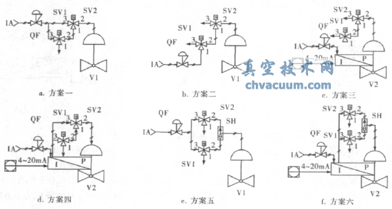 IA———儀表空氣;QF———過濾減壓閥;SV1———電磁閥;IP———閥門定位器;V1———切斷閥;V2———調節閥;SH———梭閥
